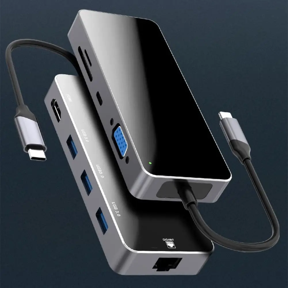 OVERVIEW Product Type-C to USB 3.0 HDMI Micro-SD TF Card Reader VGA Adapter Splitter Dock Hub for MacBook Pro 8 in 1